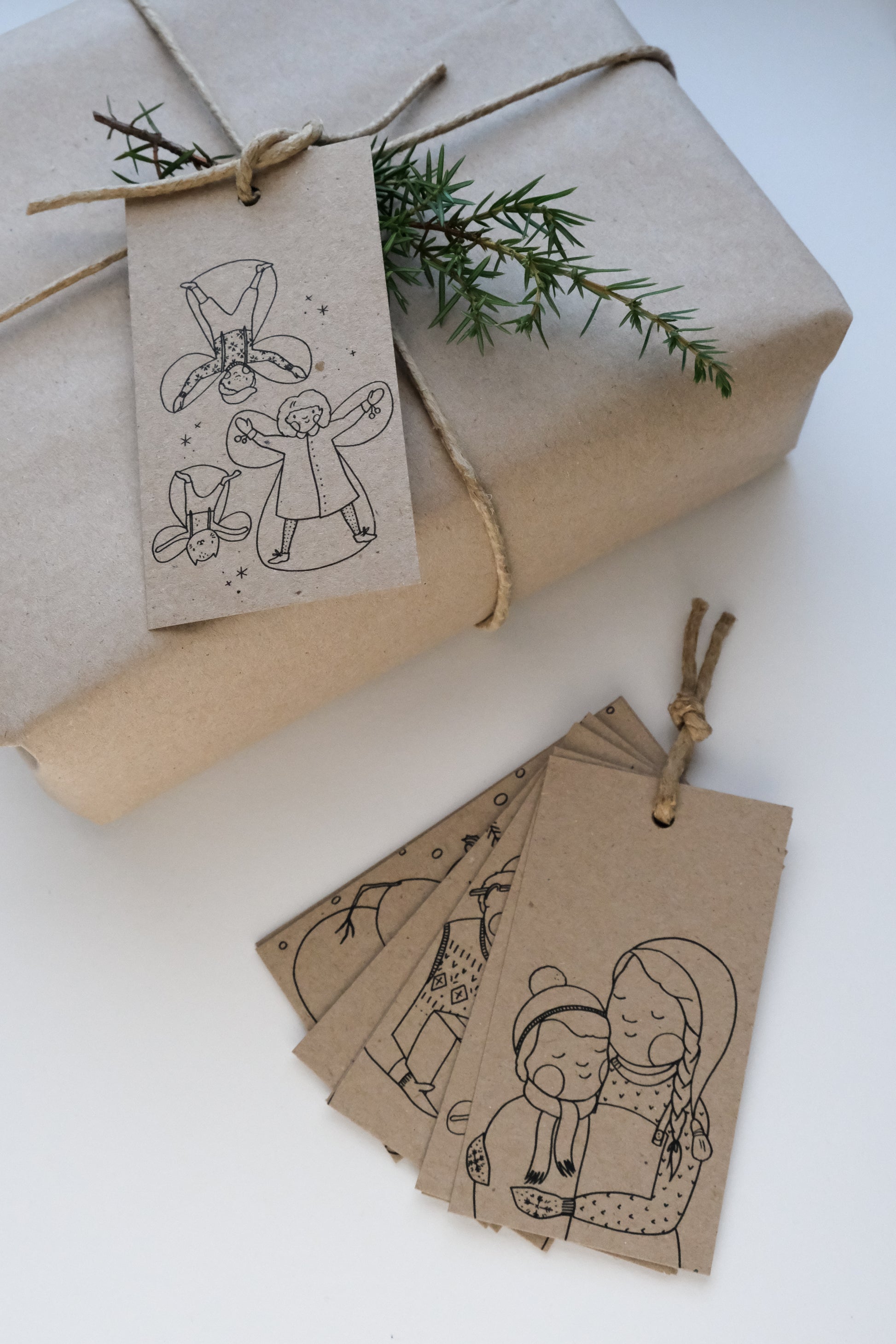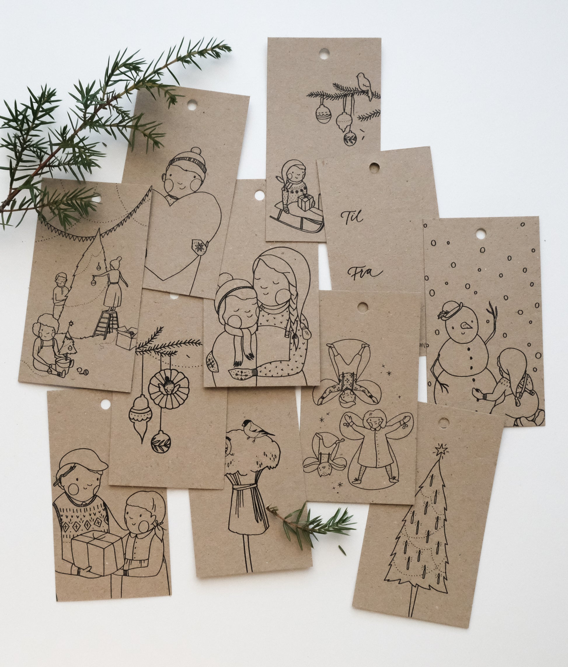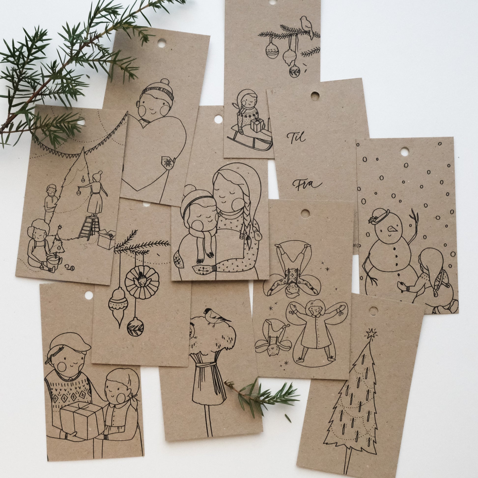 Pakker med ti ulike til og fra lapper med klassiske julemotiver.